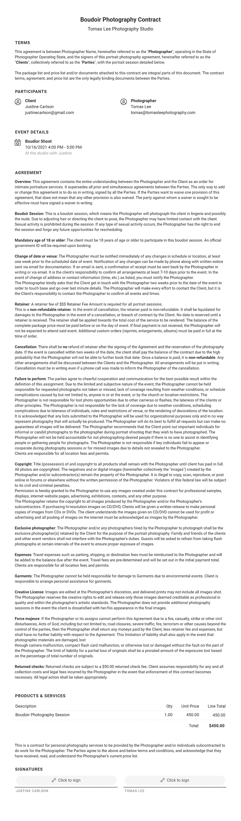 Boudoir photography contracts