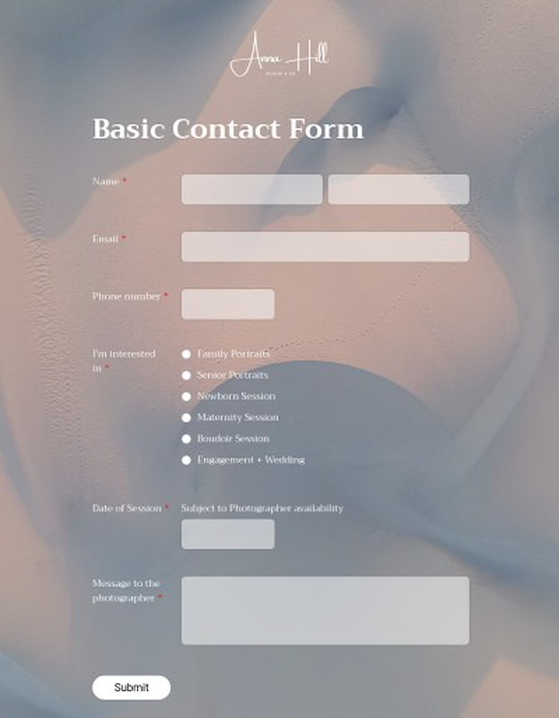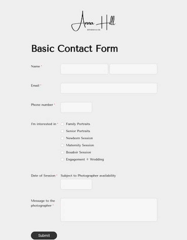 Any Lightfolio form can be embedded in any website. Or you can send out an invite by email. When a prospective client completes the form, you'll receive an email notification and the new lead will now be in your client database.