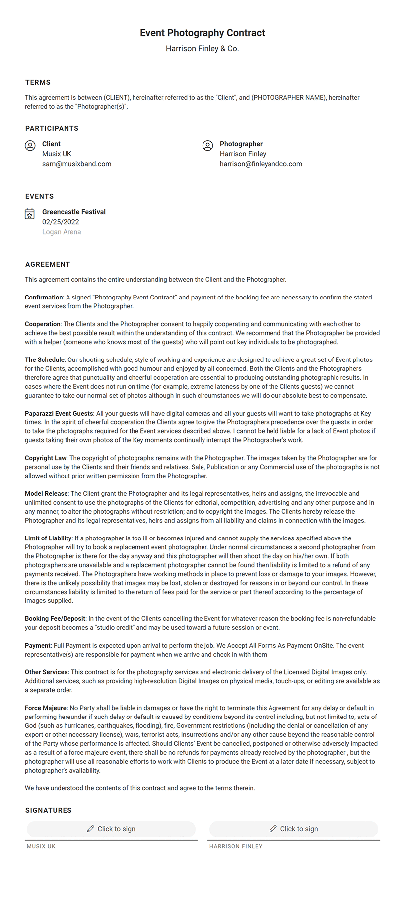 Event photography contracts