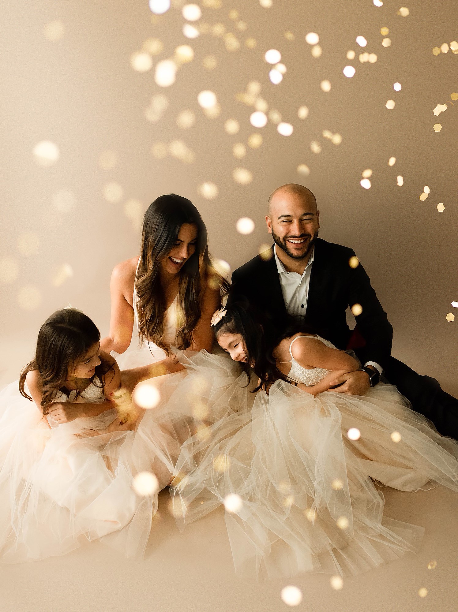 Melissa also offers helpful technical advice. She lits her images from the side and has her subjects stand at the very back edge of her PLM (parabolic light modifier). This way, the light catches the glitter as it falls, and makes it stand out from the unlit backdrop. Feather light hits the backdrop, but the glitter’s tossed in front of her subject, so it’s in direct light, and her subject’s in soft feathered light.