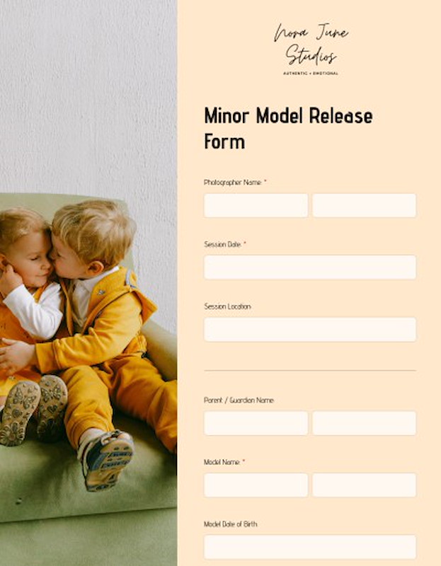 A minor model release is much like any standard model release form, in that it is a legally binding contract between the photographer and the client. In this case, it is a parent or guardian of a model who is under the age of 18.