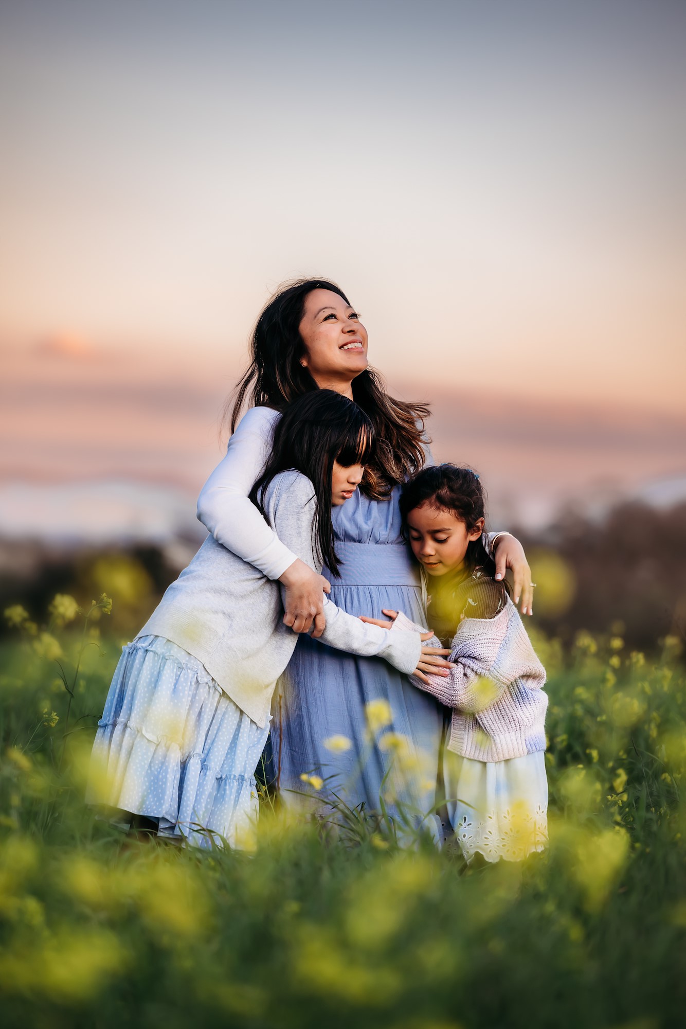 Jenn recommends that moms pick an outfit they feel confident and comfortable in. She usually advises against overly tight clothing and particularly likes shooting flowy dresses that can add movement to images. If that’s not mom’s style, she says something simple and classic — like jeans paired with a chunky off-the-shoulder sweater — can be easily dressed up with accessories. Like many modern photographers, she prefers her clients to work within a range of complimentary colors. “When choosing their children's outfits, I suggest coordinating colors rather than overly matchy," Jenn advises.