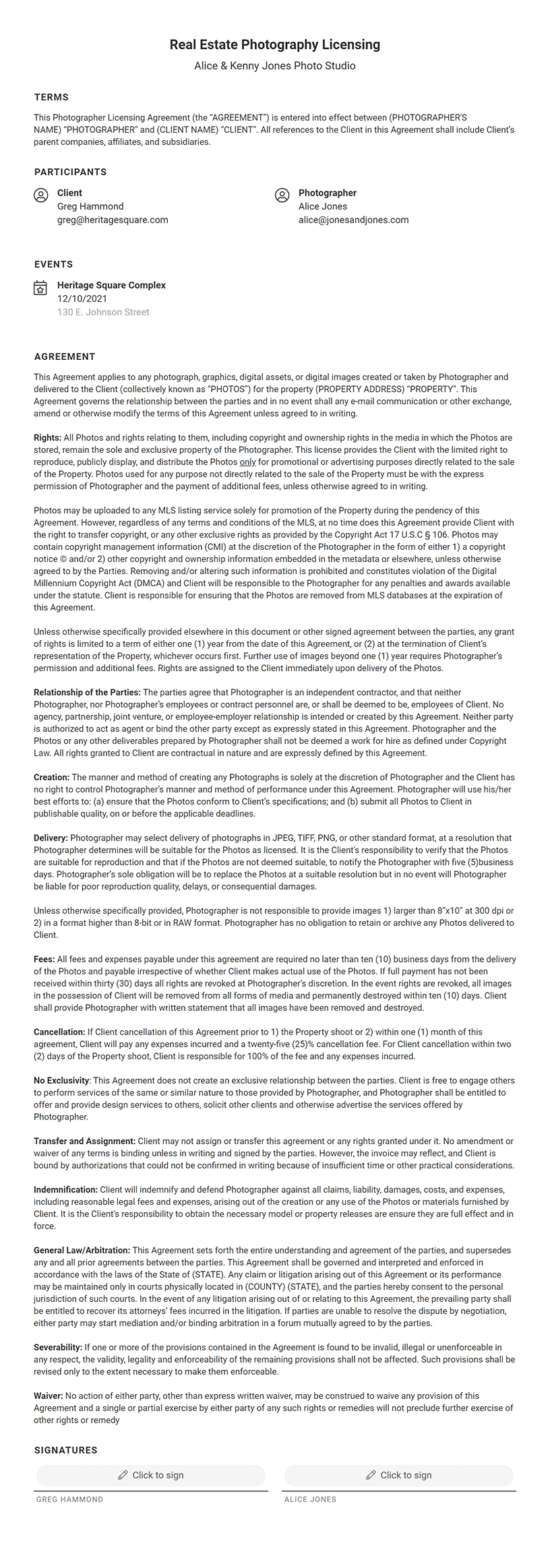 Real estate photography contracts